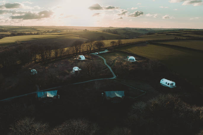 Follow the single track road for approx one mile and at crossroads, proceed straight over and down the hill. On the left you will get to a gate that leads into the carpark – there is a sign saying ‘glamping field’ and you’ll see the domes. If you get to The Old Vicarage on your left and St Clether church opposite you have gone too far. Turn round and go back up the hill to the car park. It is self-check in so as long as it is after check-in time please just go straight to your pod!