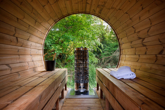 Wild Spa Experience - includes use of the spa area (sauna, drench cold water shower, standard hot and cold shower, cocoon relaxation space), dressing gowns, extra towels, invigorating scrub from Made of Life Organics and a selection of herbal trees from the Cornish Wild Tea Co. The private sessions are four hours long and can be booked for 7am, 12pm and 5pm 7 days a week. £80 per couple per session.