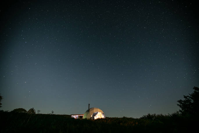 The spaces at Ekopod are each set in their own area of the meadow, close enough for groups to create a community vibe if booked together. You might see your neighbours from time to time and meet other guests if you head up to the main barn to charge devices or investigate the snacks on offer at the honesty shop. Or of course, on your way to the sauna…
