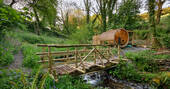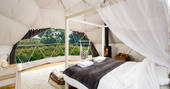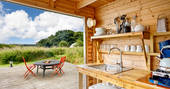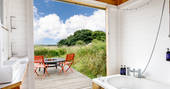 Hidden in its own fold of the Cornish hills, Nessa takes the fusion of modern design and outdoor living one step further. The four-poster bed is the standout feature of the minimal white interior with the hanging chair and low divan, whilst the thick throws, rugs and wood burner keep things cosy on chillier nights.