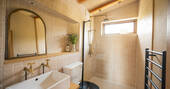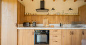 Indoors is as stunning as outdoors here, and the blend between the two is transfixing. The large picture windows spill light on the clean lines, leather, stone and light wood, and frames a space you’ll luxuriate in living in. The kitchen’s outfitted with a Smeg oven and two induction hobs, for when you inevitably have fresh seafood from the nearby coast – there’s even the grill on the firepit if you’re feeling like smoky delights. If you come back from the sea a little salty, freshen up in the shower in the modern bathroom, and then lie back in front of a crackling wood burner, and watch as deer hop the distant hedgerows.