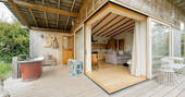 Don’t let the smooth wood and simple aesthetic of this cabin fool you, whilst it looks like the front cover of a Scandinavian lifestyle magazine – it’s beautifully balanced between style and substance. It’s a place to breeze through, sliding back the windows to blend the indoors and outdoors into a single space, stretching out on the sofa and taking in the views, or padding out to the bath and steaming away in the fresh air.