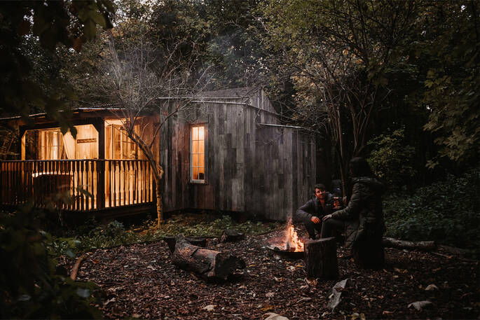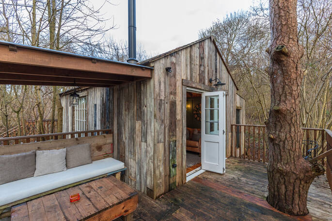 The treehouse combines the rustic aesthetic of an old English barn with the highest in build quality and touches of magic that gives you an experience equal parts wilderness and delicious indulgence. There’s local produce in the welcome hamper and artistic, upcycled decoration all around you. Down below you’ll find a firepit where you can wrap up and watch the flames crackle.