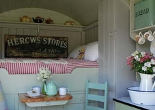 A charmingly renovated, 100 year old shepherd's hut full of vintage furnishings and royal memorabilia with a private wood fired hot tub