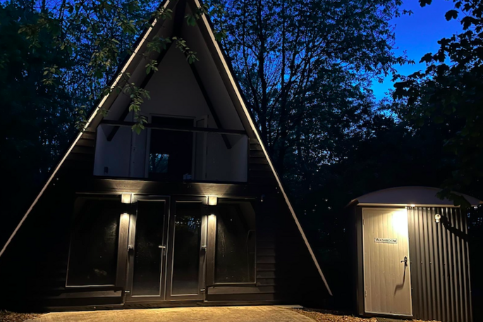- An additional 8 guests are possible (£40 per person, per night) with 4 guests accommodated in a 4th lodge tent, 2 in a nearby shepherd's hut, and 2 in an A Frame cabin