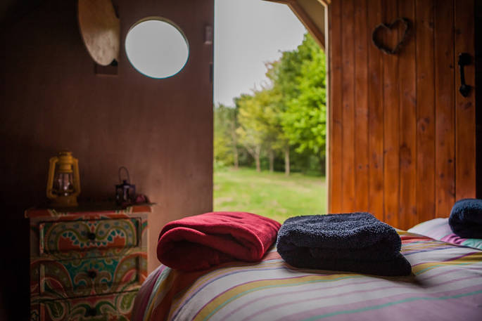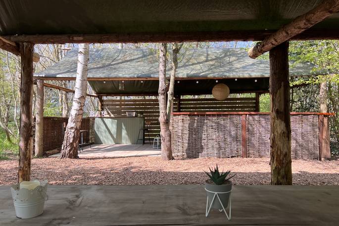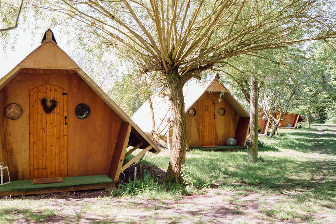 The people at the Kenton Hall Estate know a thing or two about throwing parties from hosting weddings in their extensive grounds in summer. So when it comes to setting up a sociable escape, you can bet they do it well. The six “rooms” consist of four wood and canvas lodges in a line down by the moat and a shepherd’s hut in the woods. All spaces have superbly soft bedding and mains power, right down to the electric blankets that keep you cosy at night in any weather. There are private showers and loos by the hut, as well as a separate set for the lodge tent guests. The large outdoor kitchen is fully equipped and covered, making a great space to gather by the big range at the start of your day, or relax and recount by the firepit at the end or bathe under the trees.