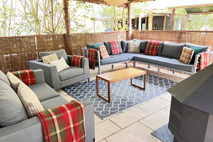 Everything we wanted for a fabulous glamping experience. Beautiful woodland setting with fairy lights in the woods. Rustic furniture and fully equipped retro kitchen. Large log burner fire. Our group had the shepherd’s hut, yurt and lodges, all had very comfortable beds and were beautifully decorated, very cosy. High standard of cleanliness throughout the site. Flat grassland where we played games. Lovely private toilet and shower huts with the shepherd’s hut and yurt.