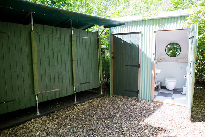 - Private washrooms 2-min walk - 2 washrooms with shower and flushing toilet each; 3 showers in a shower block plus 2 more separate flushing toilets (in total 5 showers and 4 toilets).