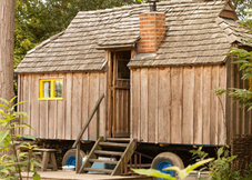 A cosy crooked cottage in the woods at Swallowtail Hill - perfect for Goldilocks and animal-loving kids of all ages