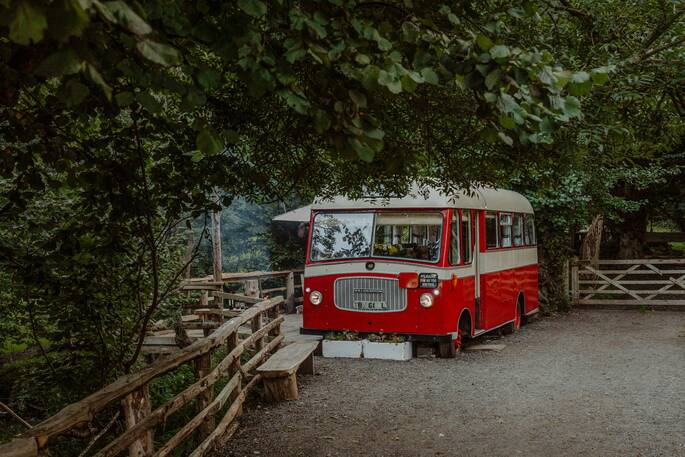 Stuart found this bus over 12 years ago and of course, fell in love with it (obviously, who wouldn't?). Stuart has now restored it and has it situated in one of his favourite and most beautiful spots on their dreamland here, off grid with it's own solar-power system, spring water and separate composting toilet. With the decking over the stream and the shepherds hut to go along with it, he is so pleased to now be inviting guests to stay and experience this kind of serenity.