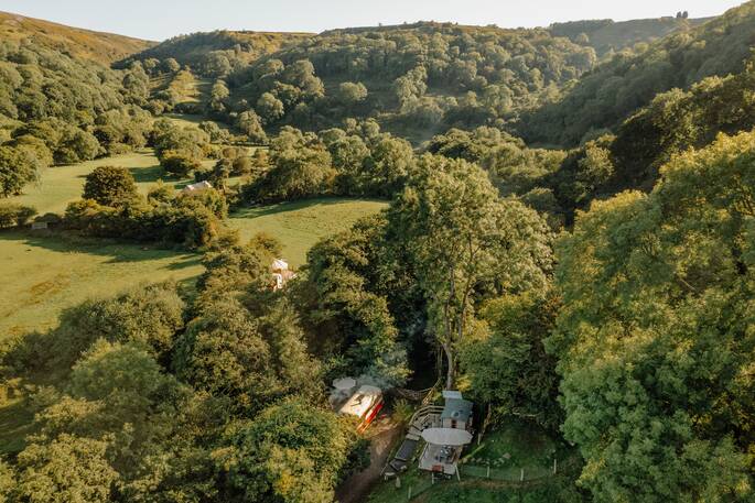 Stuart's family have owned the farm here in the "Cordell Country" since 1986 (Stuart was 12 years old) and fell in love with this magical land immediately. Stuart has only grown more passionate about the area as the years have gone by and in getting to know this place it became apparent that he was living somewhere extremely special. Although quite remote, the farm has often been enjoyed in the company of their friends and family who always remind them how amazing and unique this place is and Stuart is very pleased to share the magic of this farm with visitors to his yurt and bus in their spot known as "Cwm Sticky Dingle".