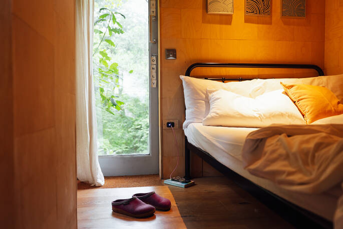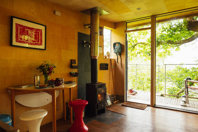 The treehouse at Beudy Banc is owner Dafydd’s latest creation, taking his cool cabins up into the treetops. There are no shared facilities, but you might meet other guests here and there.