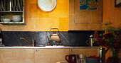 - Kitchen equipped with a dual gas hob, kettle and cool box