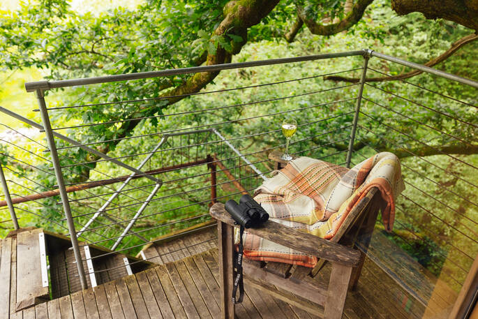 This trip was for my big birthday. I booked the treehouse for me and my partner. The other treehouse and 2 cabins were also booked for my children and their families. In other words, 3 generations enjoyed this trip! The accommodation was clean and spacious, and had lovely views from the decking area. Even though the rain was heavy and the wind was strong, the treehouse remained cosy. We sat in and watched the surrounding trees swaying about. I am fortunate to be able to glamp many times per year, as I don't have a main 'big holiday', and I have to mention the mattress being so comfortable, that it gave us one of the best sleeps we've had on a glamping trip! The cool box kept our food nicely chilled, and there were plenty of ice packs in the communal freezer in the barn to replace melted ones, if required. Above all, the peace, quiet, and beautiful views enabled me and my family to have a very relaxing stay.