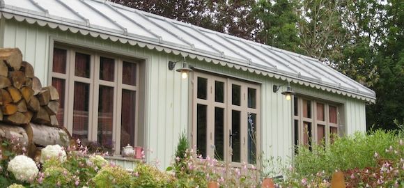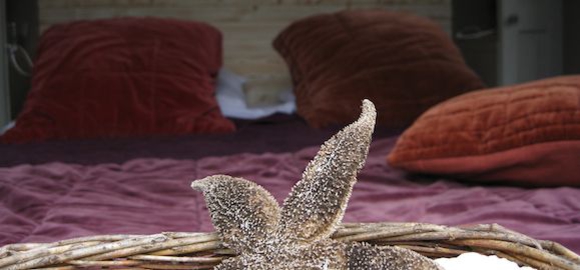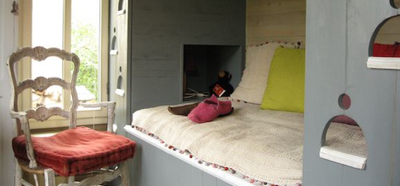 In the peaceful Normandy village of Ver-sur-Mer, a couple of minutes' walk from the beach, a wheeled cabin in seaside colours of vintage rose, sea-greens and -greys blends beautifully and naturally with the olive trees and pin parasol of Sandrine's Provence-inspired garden. Inside, bright colours and fresh flowers lend a welcoming air, and the B&B next door means you aren’t at all isolated.