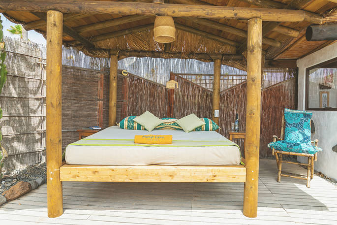 The six-metre eco yurt is one of several spaces at Finca Arrieta, each of which has its own fenced-off spot on the camp. You’ve got a private loo and shower hut, a sophisticated outdoor kitchen and sun loungers so you can soak up the rays and then retreat to the shade of the yurt or the cool of the pool when the sun gets too much. In the welcome pack you’ll find all the basics - milk, tea, coffee and a bottle of wine. Once you’ve settled in, you’re free to wander the site, drift down to the beach or stroll into Arrieta, immersing yourself in the gentle pace of island life.