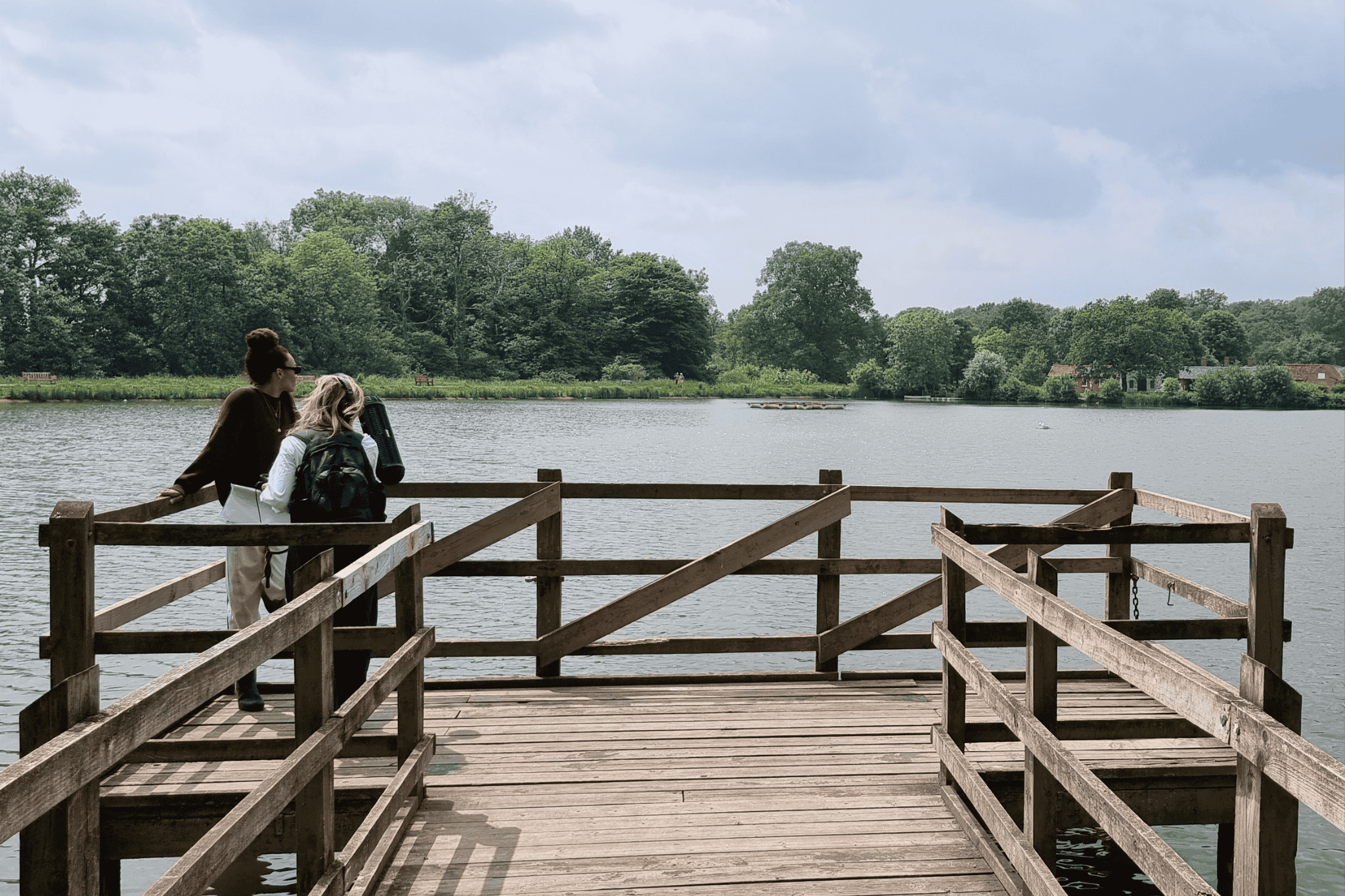 Hi everyone. I'm Adrienne Adhami. I'm here at Hatfield Forest today. Hatfield Forest is a place that I have been hundreds of times over the last few years, all seasons, rain or shine, so it's nice to be here today. It's a little cloudy, but a nice, warm June day. In front of me, I can just see so many different colours of green. Obviously, this time of year, in June, it's really vibrant, lots of contrast. So we're walking along the boardwalk. We're going to go through a wooden gate into the forest, under the canopy and head around towards the lake.