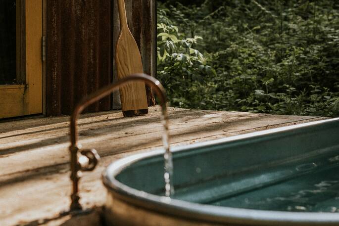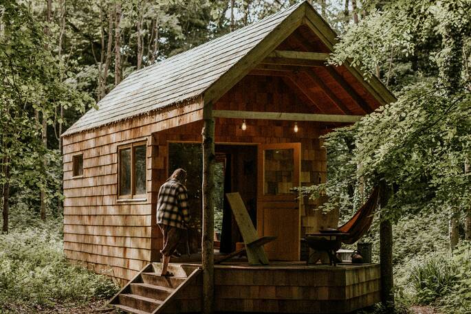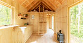 Set just between Bradford-on-Avon and Bath, Abel’s Cabin, named after the owner’s great great grandfather, is the one of the latest in a long line of glamping spaces on Campwell farm. Owner Tim, set up Campwell farm in 2014, with the modern glamper in mind, having spent his previous years working between London and Hong Kong, but travelling widely and camping in his spare time. This experience shows in his spaces, with Abel’s Cabin having stripped-back features that highlight how small the list of needs are when you’re living off-grid. This space is for adventurers, with only beds, shelves, coat hooks and the bare essentials for the kitchen indoors, though there are USB charging points for those missing their devices. Outside the space you’ll find an array of cooking options for anything you’ve gathered from Hartley Farm shop half a mile away, or the village shop which is a further quarter of a mile - a fire pit for grilling, rocket stove for a sizzling sauté. You’ll also find the woodfired outdoor bath for relaxing after a day out exploring or the hammock, ready for afternoon naps gazing up into the canopy.