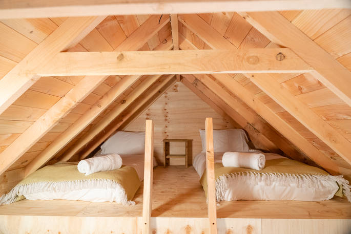 - One king-size bed and two single beds on a mezzanine accessed via a ladder