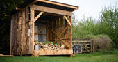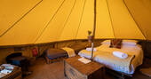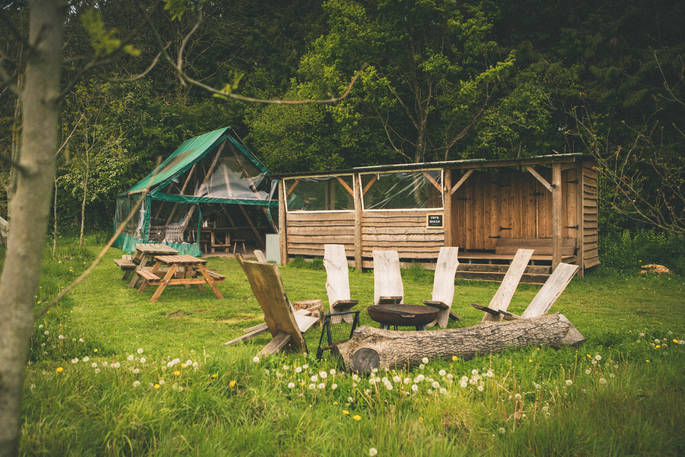 The three bell tents at The Farm Camp are each named after a favourite West Country phrase - full marks if you can work out what this one means! At the highest point of Church Farm, giving lovely views, they are lovingly furnished with a cosy selection of homemade cushions and woollen blankets, with vintage trunks, books and an impressive tealight chandelier as the centrepiece. The camp is all off-grid (you’ve got a private compost loo shed near your tent) but half a mile down the lane are the main farm buildings, where you’ll find not only power but also an indoor heated swimming pool and a games room that you’re welcome to use. Hot showers in the new facility block are shared with the other tents and there’s a Roundhouse that provides a sheltered space where you can bond with other guests around the campfire. Of course your wooded corner is perfectly private if you want some time to yourself.