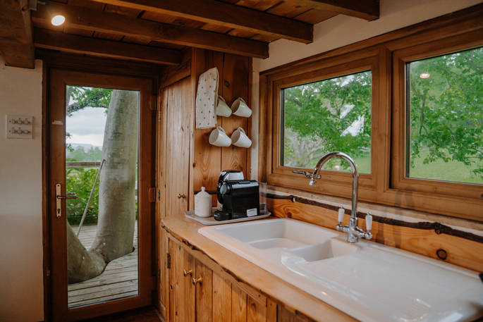 While Uplands is wonderfully calm and green, planes from nearby Bristol airport will pass over from time to time and remind you of the outside world. If you’re actively seeking a dip back into urbanity, Bristol and Wells are nearby or there’s the coast at Weston-super-Mare, for a sip of sea air. All are around half an hour’s drive from Uplands. In the immediate area, there's everything from horse riding to wine tasting, and you can walk to the village of Wrington for great places to eat and drink. That said, the treehouse is so well-equipped you technically won’t need to come down for the entire duration of your stay - there’s a flushing loo inside with its own eclectic library and hi-fi, an open, outdoor shower is just off to the side (another good viewpoint for alpacas), and a compact kitchen is more than adequate for scrambling your breakfast eggs.