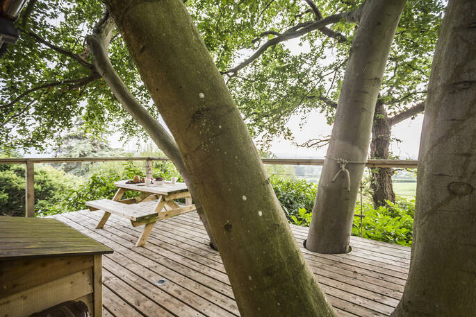 We had an amazing stay. The tree house was gorgeous, views were stunning. It was so peaceful being up in the trees. I wasn't too sure on the outdoor shower, but by the time we left it was my favourite part! We had alpacas, horses and a pony for neighbours. We spent so much time watching them play from the outside area in the treehouse. We even got to watch deer too. There were plenty of walks for the dog directly from the treehouse. We cycled the strawberry line, stopped at Thatchers Myrtle farm for lunch and a cider. The local pub, the Plough was walking distance, and very dog friendly.