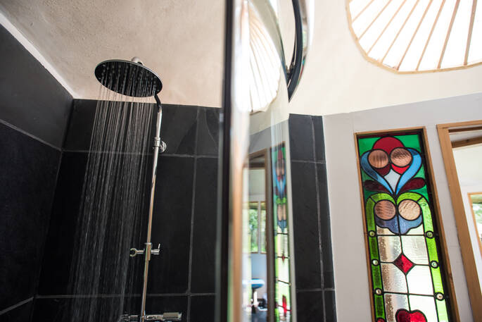 - Bathroom in the Treehouse is a large walk-in rainforest shower with plenty of hot water, and a flushing toilet