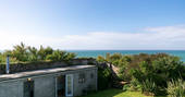 - Communal areas across the site including wild costal meadow, wooden viewing deck, and a secret cliff-side garden