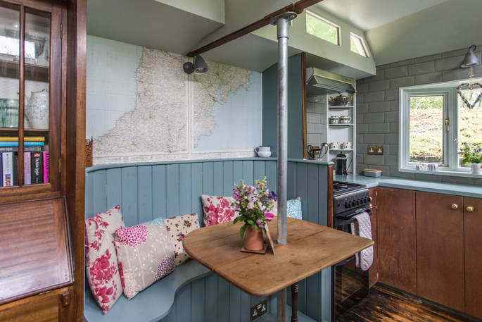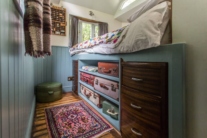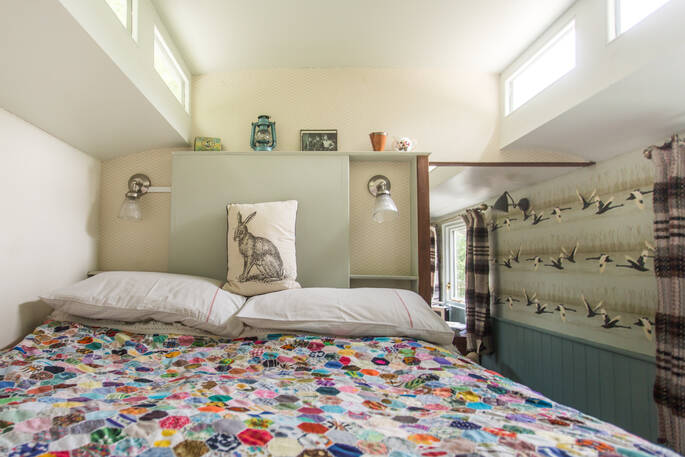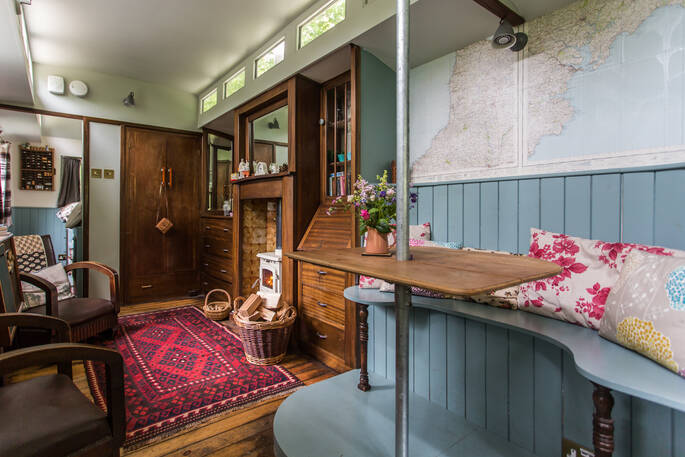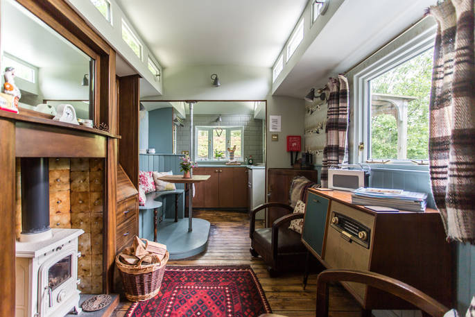 It looks like Kitty and Paddy need more space for all of their lovely trinkets and treasures and this time it comes in the shape of a shiny blue wagon. The retro radio, stripped back floor boards, and vintage suitcases under the bed will have you feeling like you’ve fallen into a wrinkle of time. There’ll be homemade cake, wine and a pint of fresh milk waiting so you can put the kettle on as soon as you get in. The hut next door is your private bathroom but for a soak with a view, hop in the wood-fired hot tub and watch the weather change across the skies. Campfires and the occasional owl hootenanny are the nightlife here and the wood burner will keep you and your crumpets toasty - try taking a plateful to your king size bed and playing cards by fairy light.