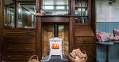 - The main source of heat comes from the wood burner