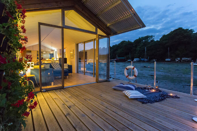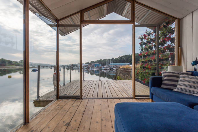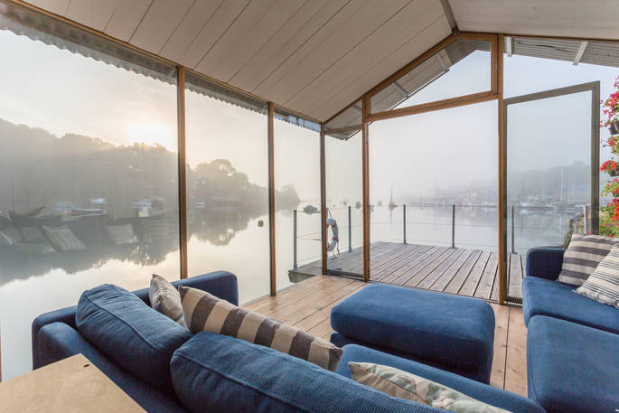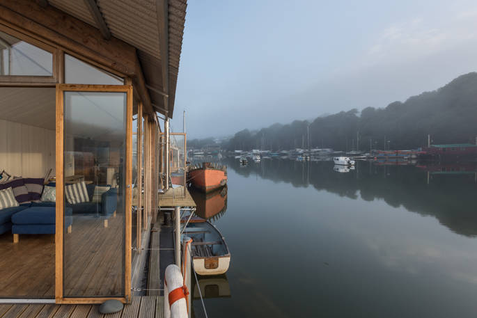 It’s easy to let the day drift away at The Floathouse Amelie, as you lounge on the sofa with a cup of tea, watching the tide ebb and flow, the boats potter up and down and the light constantly shift on the Penryn River. The open plan space with huge corner windows is a perfect suntrap and you can wander out onto one of the decks for yoga or a nap, maybe take the rowing boat out to the nature reserve just down-river or watch wading birds dibbling for food on the mud banks at low tide - even the occasional inquisitive seal. Make the difficult choice between heading down to Falmouth or … just putting the kettle on again.