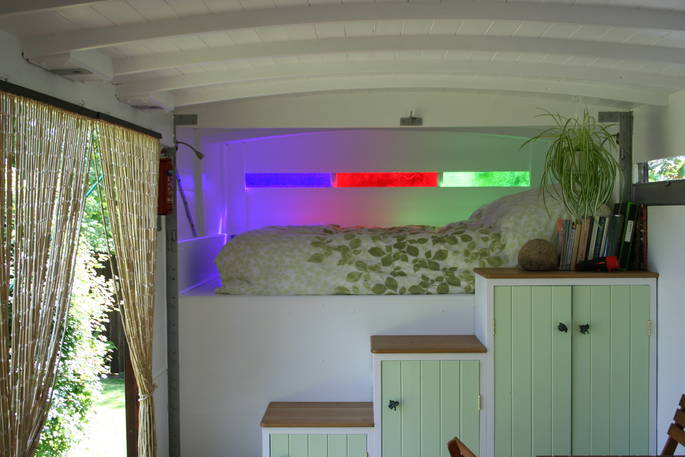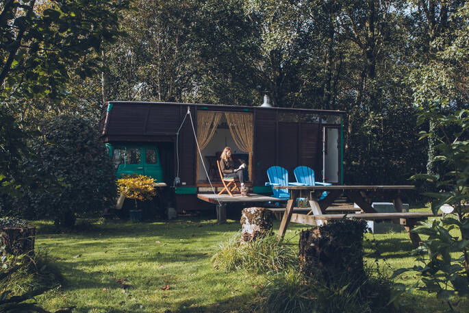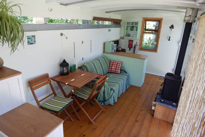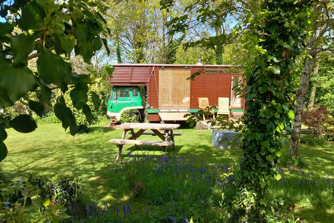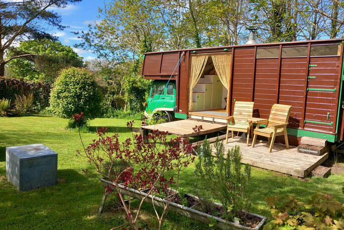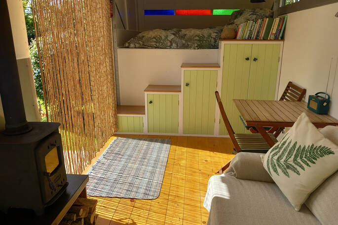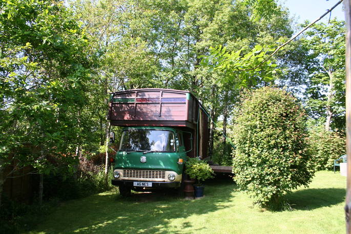 Well-established, beautifully kitted-out and in a corner of dreamy Cornwall, you're welcomed to Tree of Life with produce from the organic smallholding next door - Marie and Sylvia run a veg box business, so know their stuff. You sleep on a double bed above the cab of the lorry itself, accessed by steps that double as the (very sturdy!) cupboards. Lighting is provided by solar panels, and romance by lanterns. Cook here, in the small fitted kitchen with gas cooker and oven; in the cupboards there are all the pots, pans and utensils you could need. A short distance away (15 metres) from the horsebox is a hut with your own private compost loo and shower room. The hut also has a large sink to wash-up in, a small fridge, and a place to store coats and boots after a walk, or sandy things after a day on the beach at quaint St Agnes. If you have a ploughman's or a good Sunday roast in mind, head to the Miner's Arms in Mithian, a 10-minute walk, and enjoy Cornish real ales while you wait.
