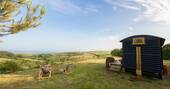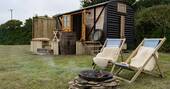 There’s an al fresco table, should you fancy eating out in the fresh air, and loungers not too far away, beside a firepit – both spots perfect for watching the woven hillside disappear into vast blue sea. Spend your morning heading down to the beach just a couple of miles away, either for walks on the sand, dips in the sea or even a crack at surfing – heading back to rinse the salt off under the outdoor shower.