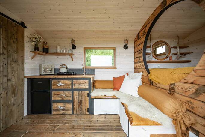 Gwel an Mor is perfect for people who want nature, luxury and and the most incredible view. Think sea air, sunset hot tub dips and lazy mornings in a cosy design-led cabin. You can take a walk through the woods or try and spot a deer from your seat by the fire pit. It's peaceful, wild and a little bit magical.