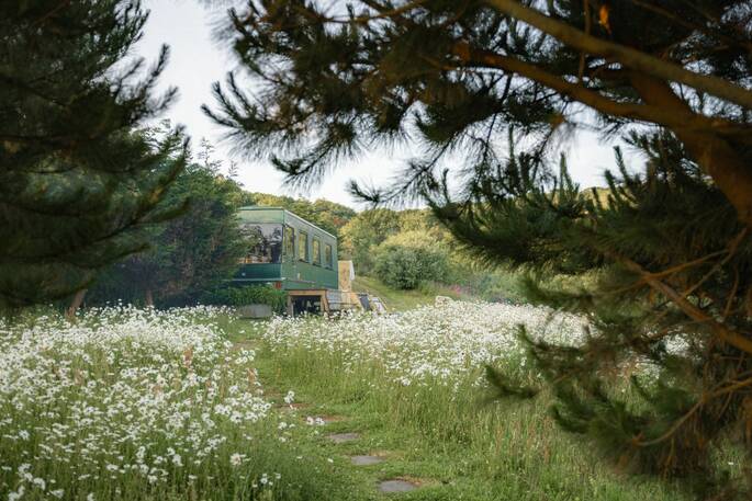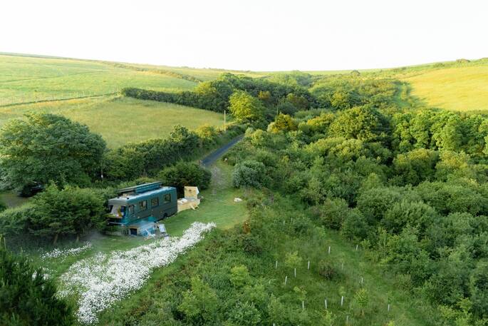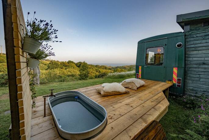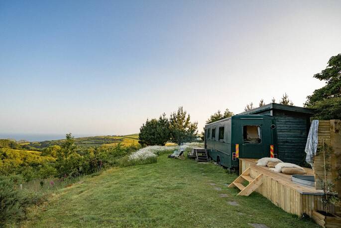 Has to be one of the most beautiful settings in the whole of Cornwall. Sea views, woodland, meadows, wildlife and serene silence! Outside space is both private yet open to the huge surrounding farm. The restoration of the mobile library is simply brilliant; cosy, homely, warm and smile inducing!