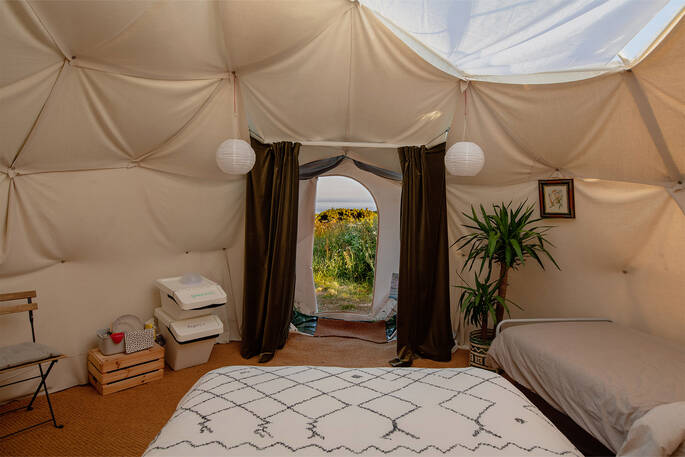 Wilderme is a truly inspiring project set high on a truly inspiring landscape. The views are amazing, but so too are the aims of Geoff and Natalie. Sometimes when we look for ‘special’ in a place, when deciding whether to add to Canopy & Stars, it’s about the setting and connection to nature, sometimes the space and sometimes the owners and their passion and what they’re trying to do. It’s often it’s a beautiful mix of all three, and this place scores sky high on the vision and purpose, which is very special indeed. I really enjoyed visiting and hope to come back. The whole vibe of the place is super positive. The Rame conservation trust who host the other projects that neighbour Wilderme have a clear vision for community and conservation and that's an exciting thing to be part of. So come and help support something bigger. It's a very chilled and relaxed place and you'll be next to a small family campsite, but it's all very friendly and sociable. That's part of the experience. Make sure you save one lunch or dinner for the cool cafe that's on site and run by an ex River Cottage chef. Then spend days exploring the coastline, surfing, paddleboarding or trekking through woodland. This feels like a really special place and I can't wait to go back and stay.