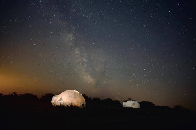 - Please note, there is a public right of way through the site, and there is also a Shepherds Hut near to the domes which is under private ownership