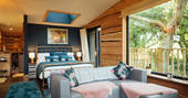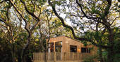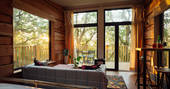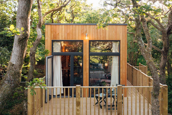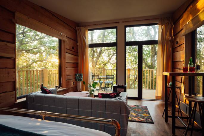 Chui treehouse, in the canopy of an ancient oak wood, is a place to dream of and in. The huge windows give you views from any part of the cabin and all you’ll see are trees, hills and not a single other building. Even while lying in the kingsize bed you can watch the stars through a big skylight. The kitchen and bathroom are both modern and well-equipped, so you’ll want for nothing, but the magic of the place is really the connection it gives you to nature. The hot tub out the back is in a little orchard, so you’ll hear birds all around as you steam away, while on the forest floor below is a well-used trail, crisscrossed with the tracks of badgers, deer and foxes.