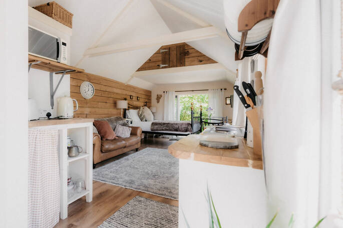Off the beaten track, down an even less beaten track, then through the woods and eventually you find this amazing cabin. It’s definitely not one for the low-riding sports car driver, but for anyone who wants a rural escape with a touch of luxury, it’s perfect. You’ll be strolling out onto the deck for breakfast, or firing up the BBQ and watching the stars come out in the night skies. It’s the sort of place where you ditch your shoes and stroll around barefoot, unwinding with every step. You’ll want for nothing at the completely en suite and self-sufficient cabin but, although you wouldn't know it, owners James and Alex are across the garden if you need local tips or have any questions.