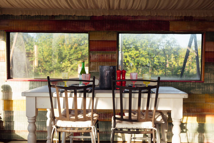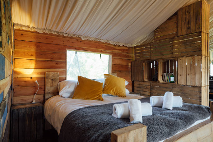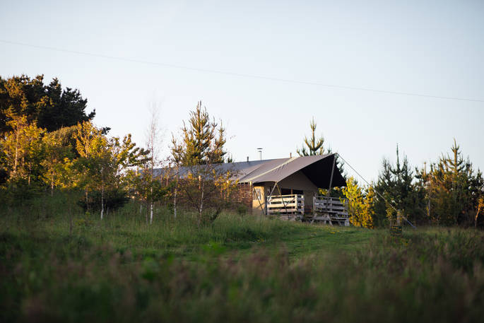 They started with the cabin, then added the two safari tents and in 2021 completed the site with the construction of their two latest additions, the treehouses.