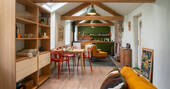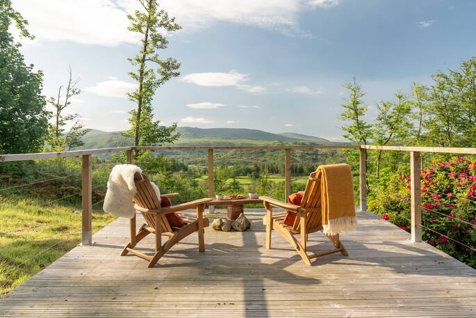 When an artist and a sustainability expert get together to create a space that reflects their shared love of nature, Bracken House is the result. The long cottage, once a ruin of which only four walls remained, has been turned into a roomy retreat, the perfect oasis for a couple. Choose a spot to stretch out, from the hammock on the deck, the massive bed, the armchairs by the wood burner or the sofa. You’ll have views from wherever you happen to settle, with the cabin looking west to the sea from its 12 acres of ancient woodland.