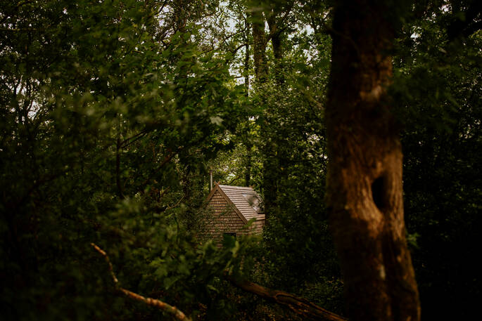 - The track from the parking to the cabin from is a short, steep shale path to the woodland of about 100 yards; the paths are not lit, torches are provided
