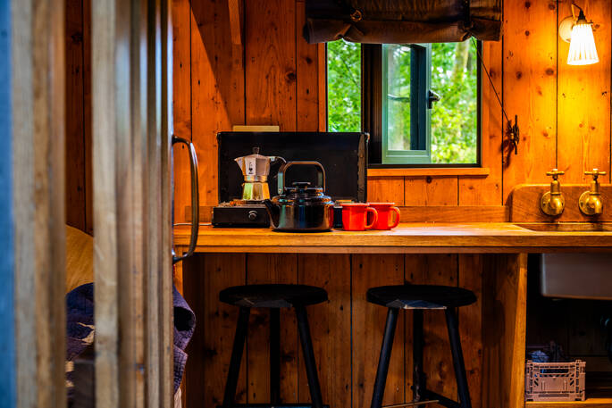 The Hütte is a brilliant feat of sustainable design and engineering. It’s entirely self-contained, with a hot shower and a composting loo en suite, as well as solar power and wood cladding that make it extremely energy efficient. Chairs and a picnic table have been set out on the deck so you can dine al fresco on wood-fired pizza or whatever you’ve whipped up on the stove. After a day’s hiking and exploring The Lakes, the wood-fired hot tub beckons as you spend the evening watching the weather sweep down the valley or the stars coming out at night.