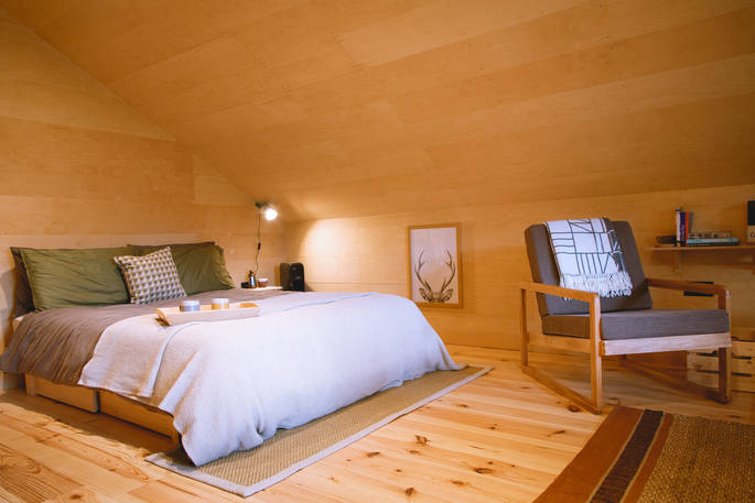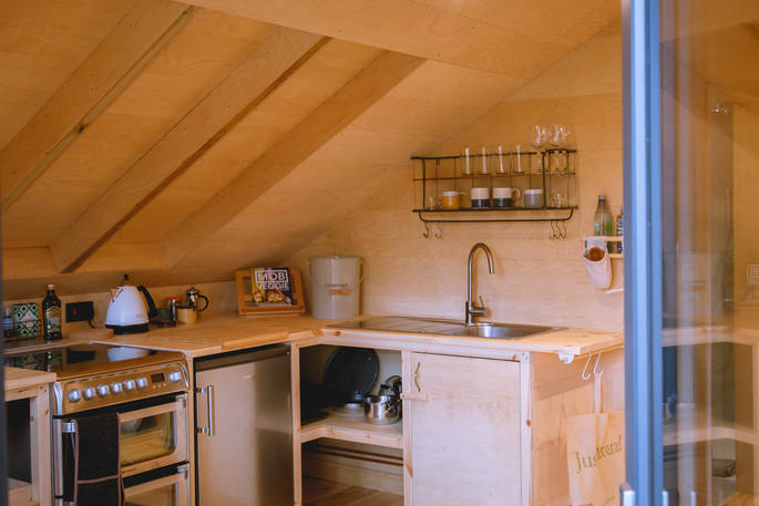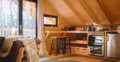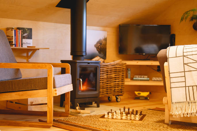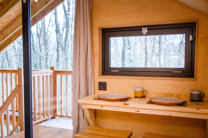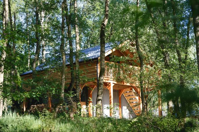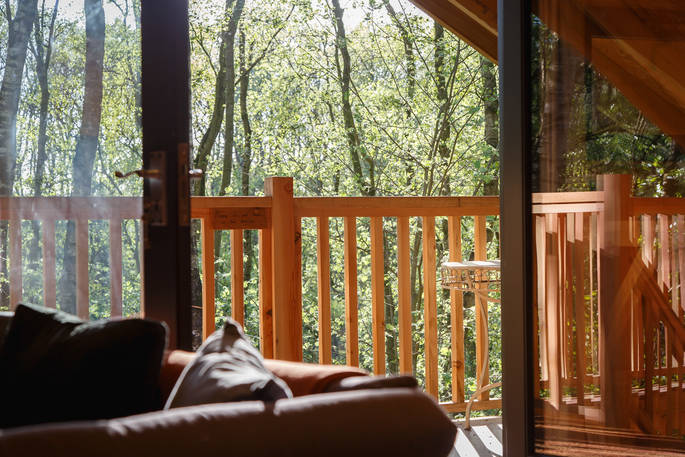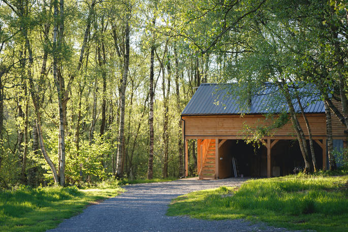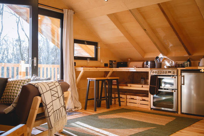 Set in 11 acres of private woodland, with as few trees cut down in its vicinity as possible, Above the Woodshed has all the privacy and immersion in the wild you could want.