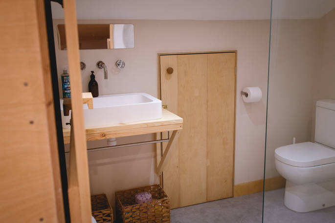 We had an amazing 3 night stay at Above the Woodshed. The cabin itself was even better than we expected set in a really idyllic location facing the owners private woods - so when you wake you look out all you can see and hear is the woodland. Although the main house and other cabin are relatively close by, we couldn’t hear them at all and didn’t bump into the other guests, so it felt very private. The cabin decor is very well done, with lovely finishing touches. It’s the perfect mix of being a cabin, yet chic scandi style interior with all the mod cons we needed for our stay. The hosts were very welcoming and helped us with tips on where to find the best wild swimming spots and we also rented their paddle boards on one of the days. Absolutely loved our stay there so would recommend it to anyone and can’t wait to rebook.