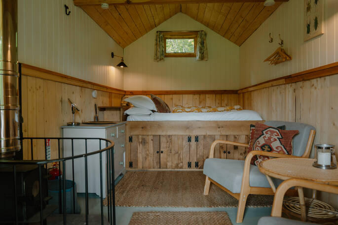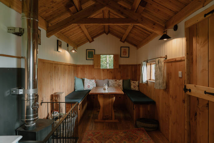 - Wood burner in The Moonshine Shack and Walden in the Woods (no heating in Tethera)