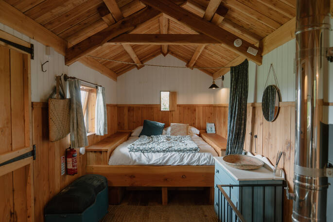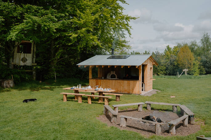 If you’re looking for somewhere to get some friends together and blow off some steam, this is definitely it. The centre of your festival-style party will be The Man Shack, which has a big range and long tables for lively meals and a bar for the mixologists among you to show their flair. Outside there’s a genuine stage and a DJ booth up a tree, although you can use bluetooth for the sound system if nobody fancies scrambling up. If you fancy a bit of a showpiece meal, fire up the pizza oven, then dance the night away with nobody to question your music choices and end it in a blissed out daze, staring at the flames of the huge fire pit.
