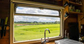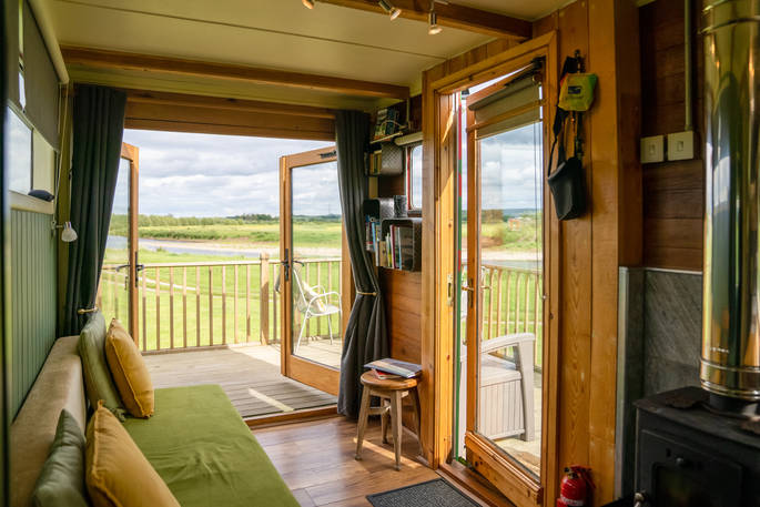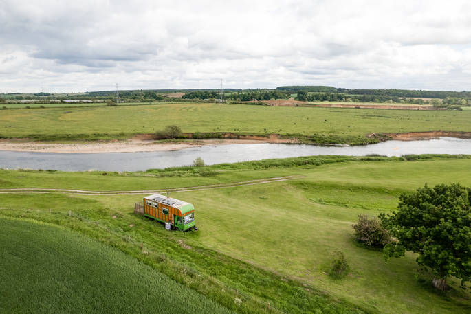 You’ll spend a lot of time on the deck here, reaching for the binoculars that hang by the door to catch the swooping martins and other thriving wildlife. Or by the wood burner, with the kettle on and the sofa in bed mode, when you really want to kick back. The real bed is above the cab - a king-size double under a low ceiling that’s fine for the tall, but perhaps not for the suddenly waking. The horsebox is completely off-grid, so it might take a few minutes to heat the water, but there’s electric lighting and USB charge points run off solar panels that give plenty of power if used sensibly. Just down the bank, you’ll see Jennings, Martin Green’s sibling horsebox. No facilities are shared, but you might meet the other guests while you’re coming and going.