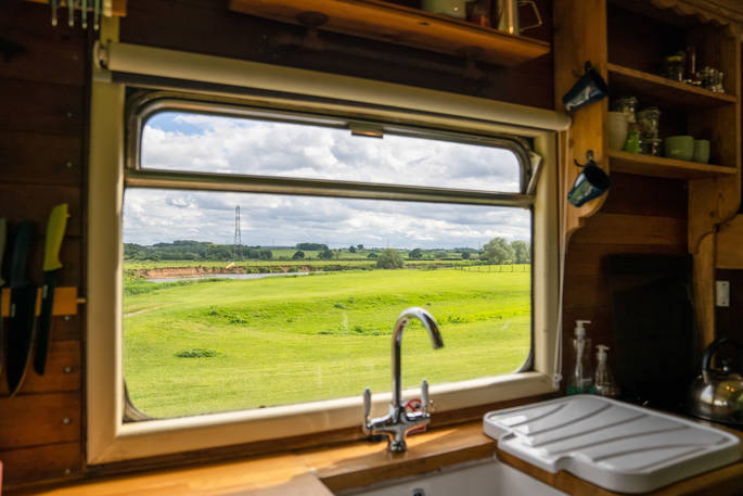 Trent Adventure is a bird watcher's paradise, with good chances of seeing kingfishers, swans, grebes, little egrets, herons and oyster catchers by the river and lots of farmland birds when looking in the other direction. The Sand Martins nest in the bank from March-October, there is usually skylark song in summer, a hobby, buzzards, barn owl, yellow wagtails and much, much more. There is a pair of binoculars hanging by the door of the horsebox! There's also been recent sightings of an otter. The horsebox is solar powered for all electrics, and uses bottled gas for cooking and water heating.