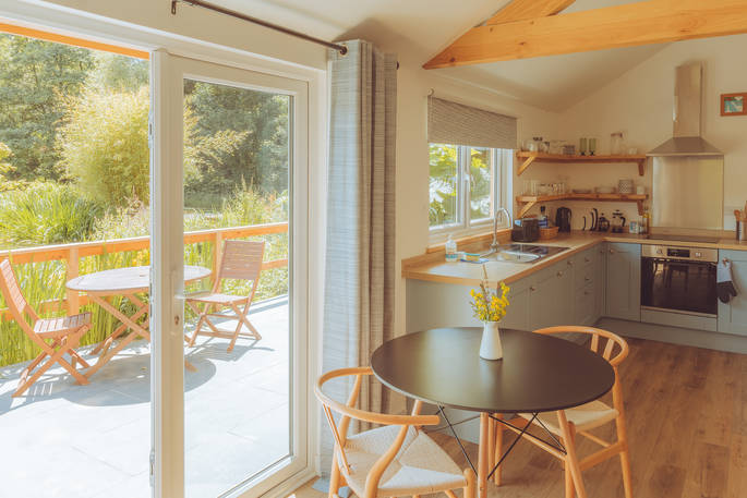 A relaxing stay in a beautiful location. The cabin was elegantly furnished, well equipped and very comfortable. The view from the cabin and the patio was idyllic, just greenery, woodland and water, perfect for lingering breakfasts. The hosts were very friendly and prompt to address minor issues (patio door got stuck). They also sold delicious smoked trout in their shop; we had it for breakfast on bagels.